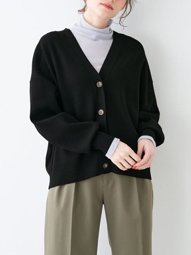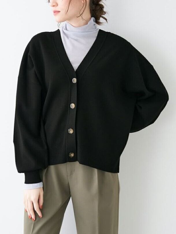 ゆるっとした身幅に、短めの着丈が新鮮なVネックカーディガン。