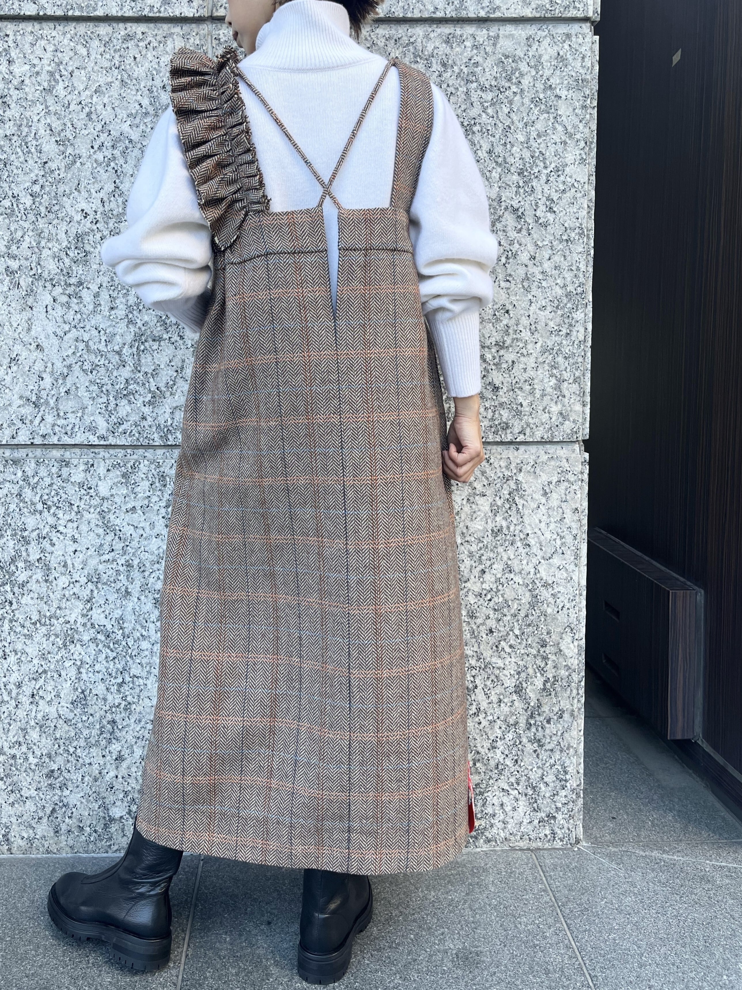 THOMAS MAGPIE(トーマスマグパイ) アシメフリルヘリンボーンチェックジャンパースカート