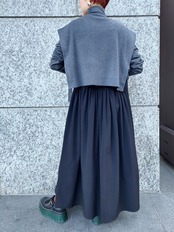 【素材】・・(ジレ)ナイロン41% アクリル28% ポリエステル25% 毛6% (ワンピース)ニット部分:ナイロン41% アクリル28% ポリエステル25% 毛6% 別布:ナイロン100%